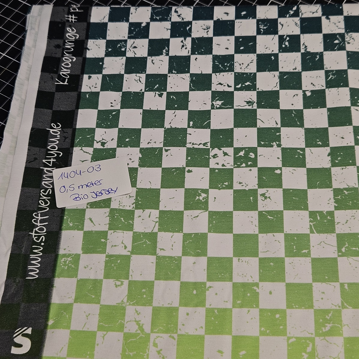 1404-03 / 0,5 Meter Karogrunge #petrol/neongreen - Bio JERSEY