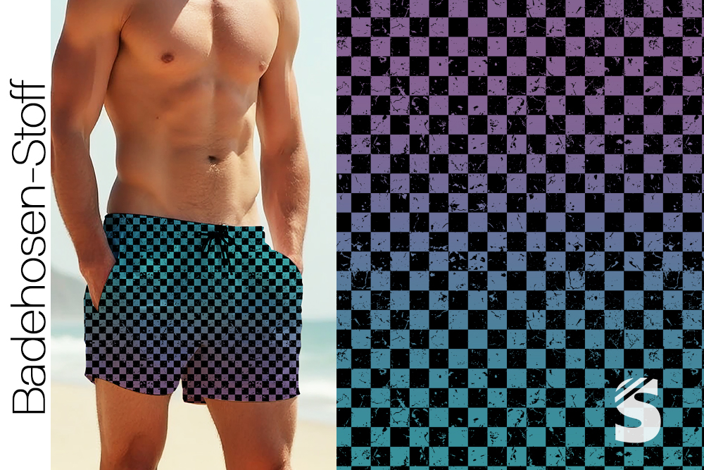 BADEHOSENSTOFF - (gewebt, nicht elastisch) - "Karogrunge LILA/SCHWARZ"