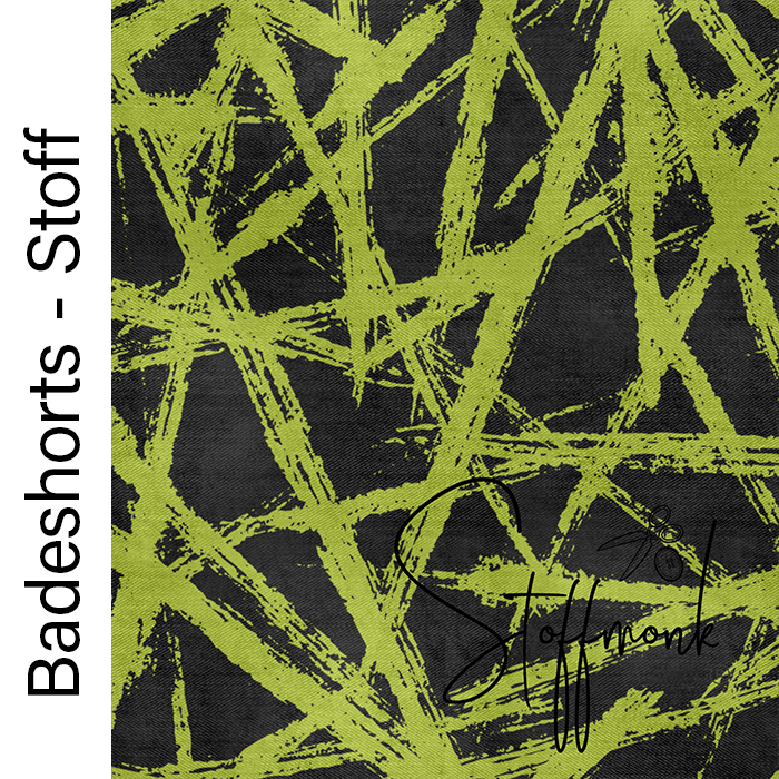 BADEHOSENSTOFF - (gewebt, nicht elastisch) - " Strokes - Schwarz/Lime "