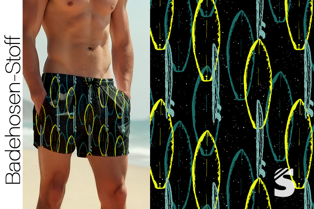 BADEHOSENSTOFF - (gewebt, nicht elastisch) - "Surfbrett #schwarz"
