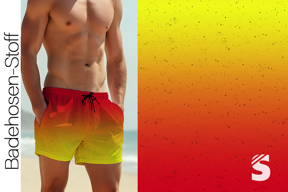 BADEHOSENSTOFF - (gewebt, nicht elastisch) - "Verlauf #rot/gelb"