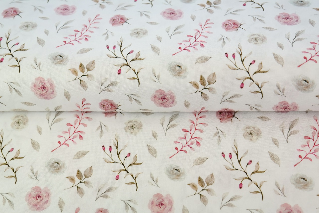 Baumwolle Digitaldruck "Aquarell Rosen" Rosa weiß