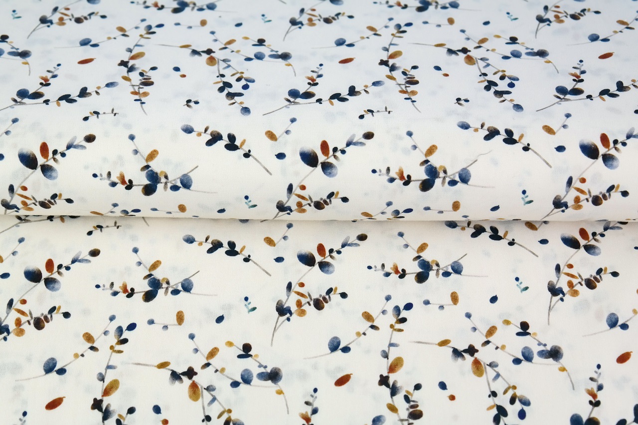 Baumwolle Digitaldruck "Blätterranken" Blau Rost