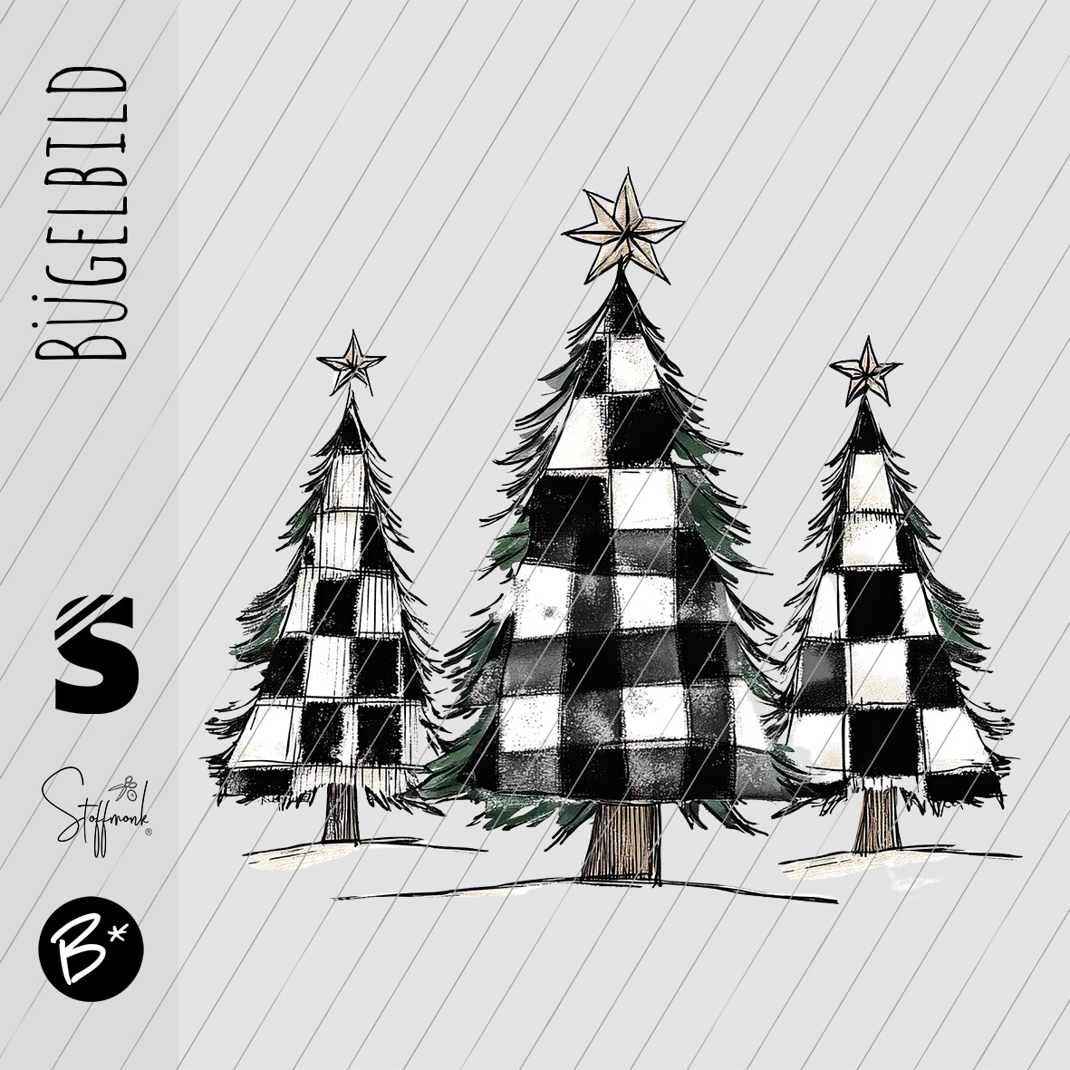 Bügelbild - " 3 Karo Tannen weiss/schwarz "