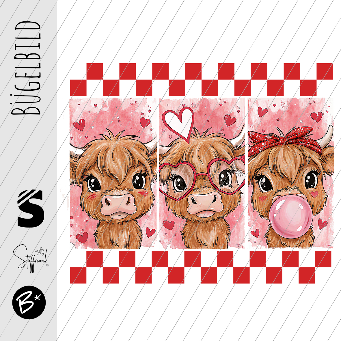 Bügelbild - "3er Kühe - Herzen Karo"
