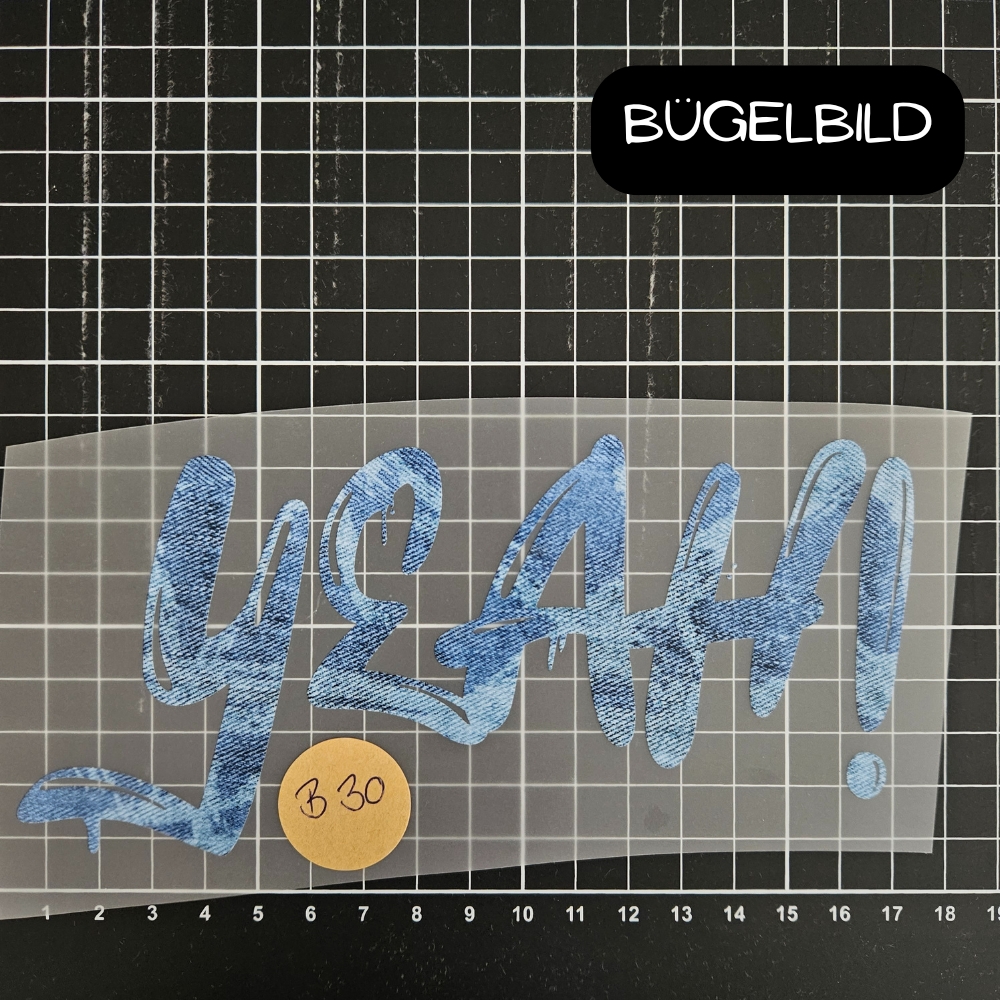 Bügelbild - B30 - YEAH! #strokes hellblau - ca.17cm - 4€
