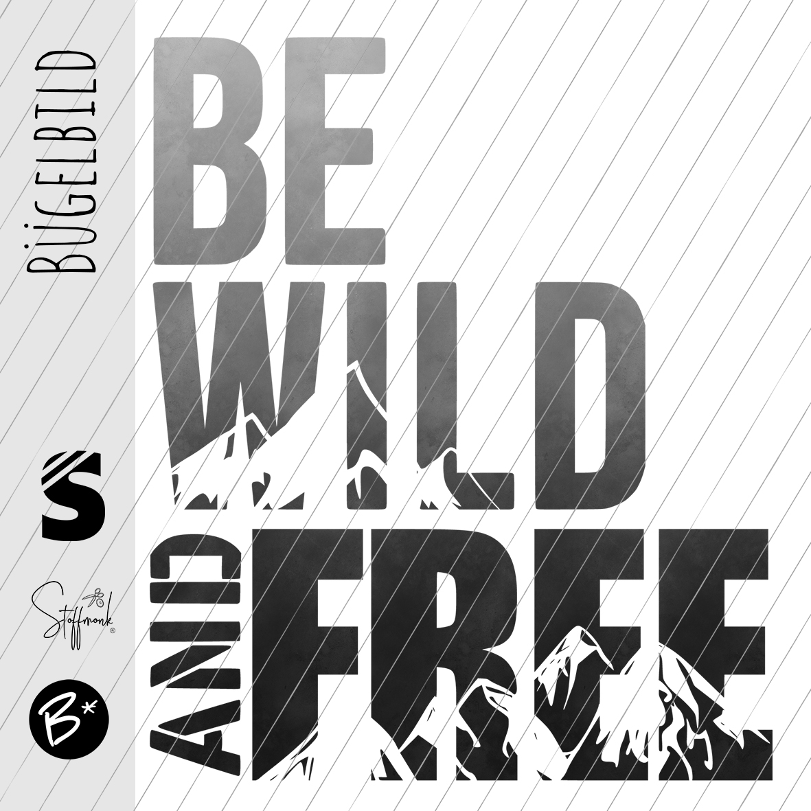 Bügelbild - " BE WILD AND FREE #grau/schwarz "