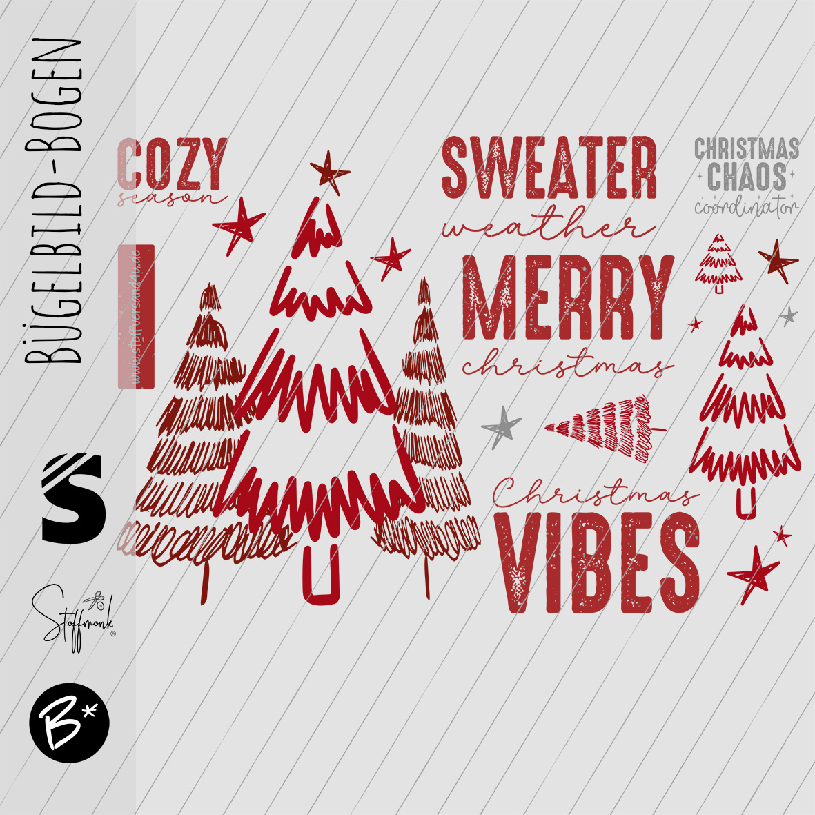 Bügelbild Bogen - DINA4 - Xmas # Rot