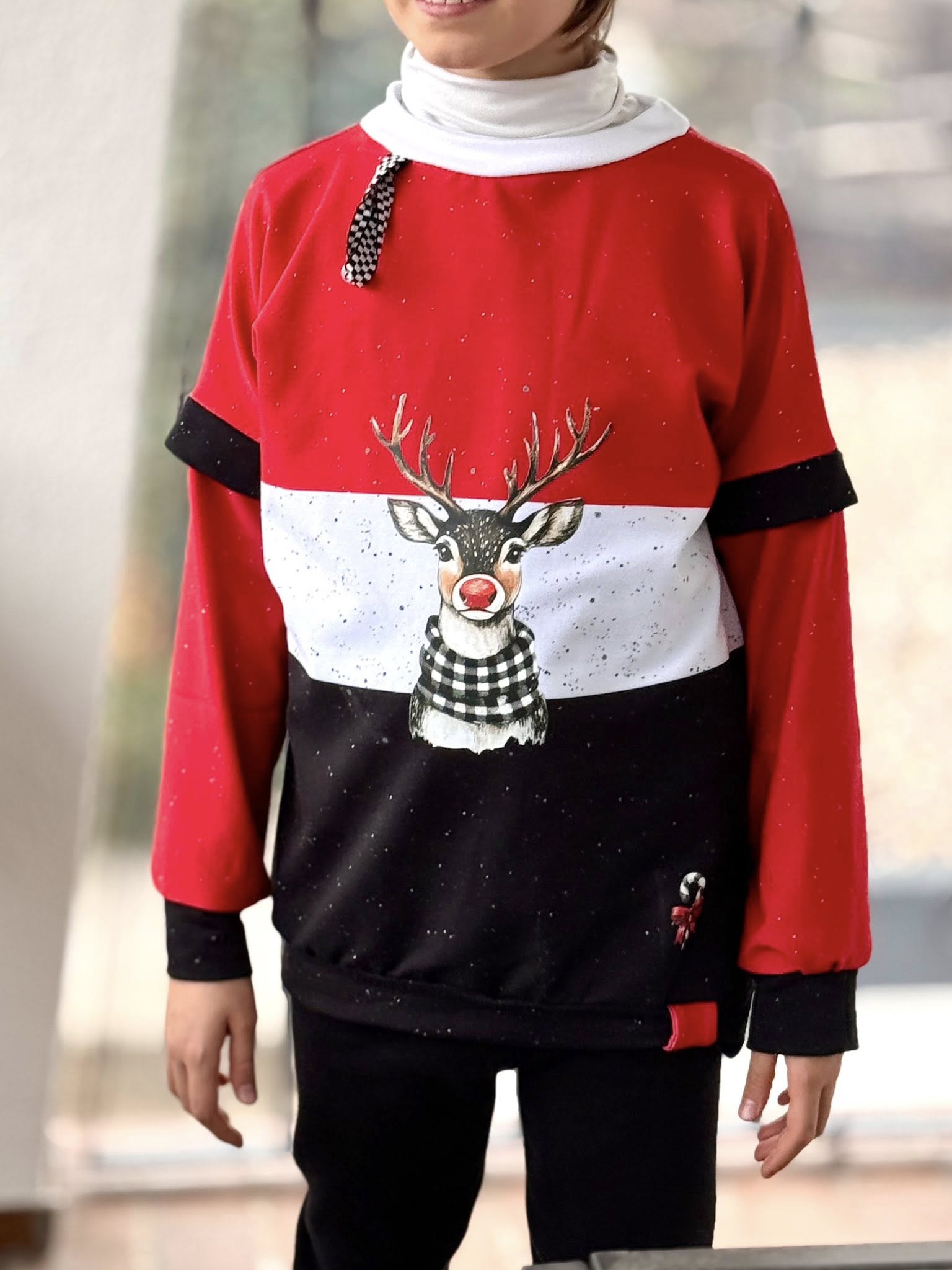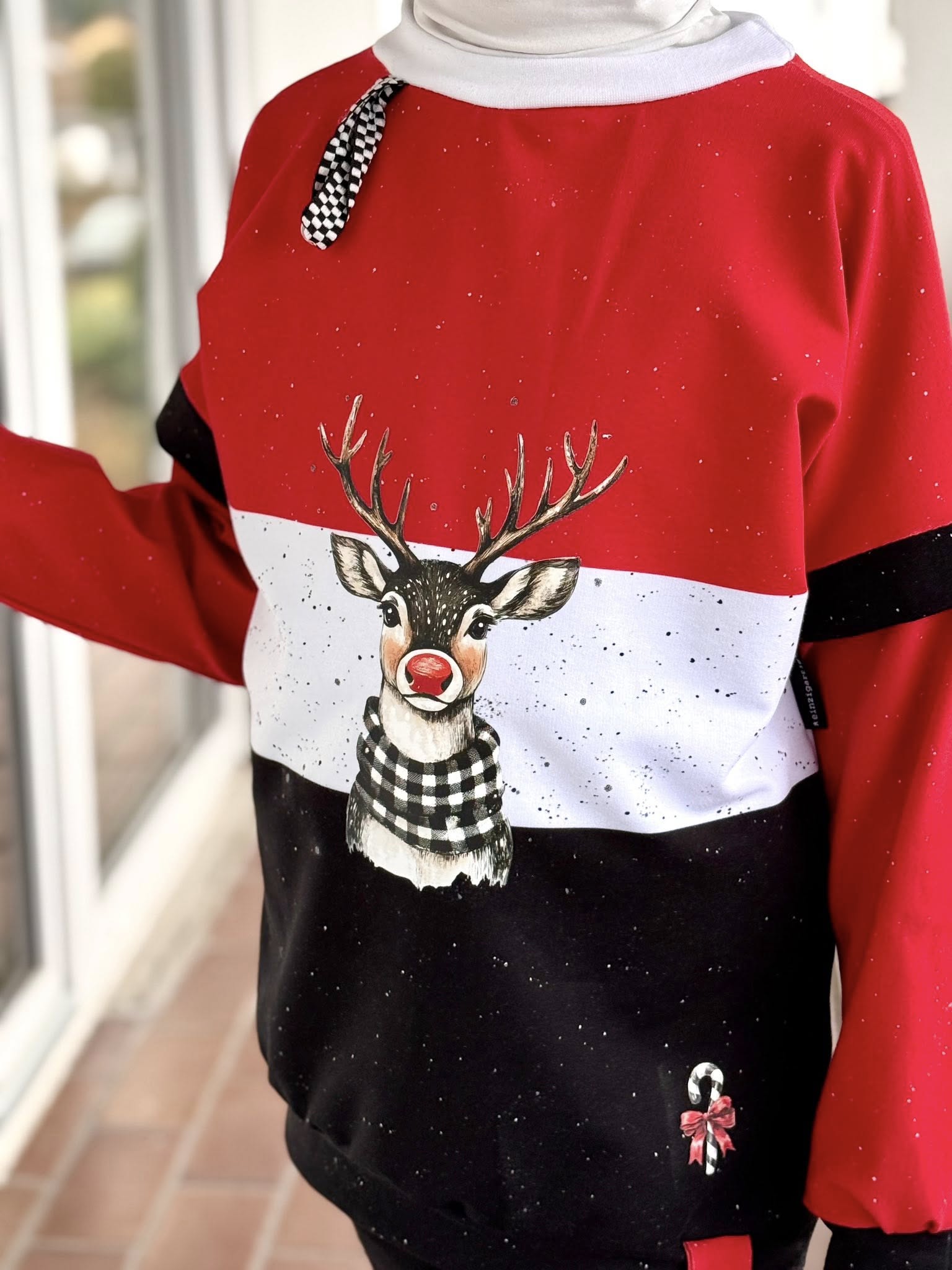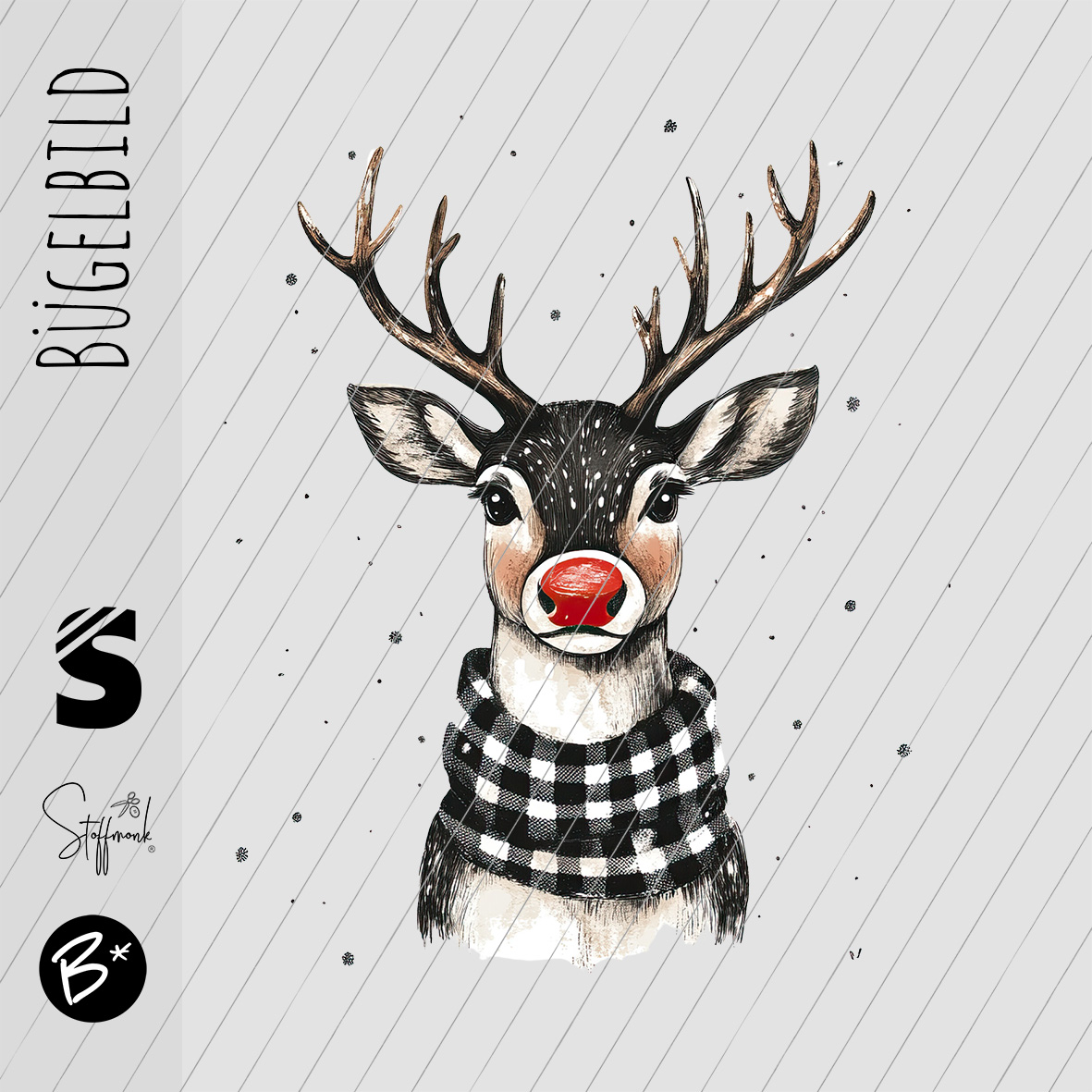 Bügelbild - " Elch weiss/schwarz " mit roter Nase