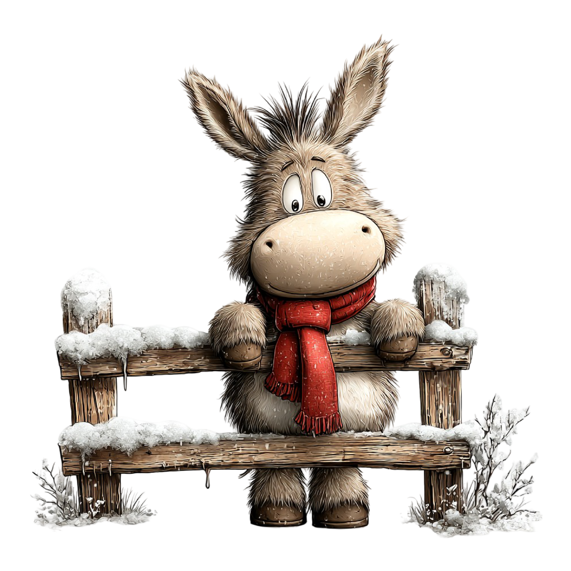 Bügelbild - " Esel am Zaun (roter Schal) "