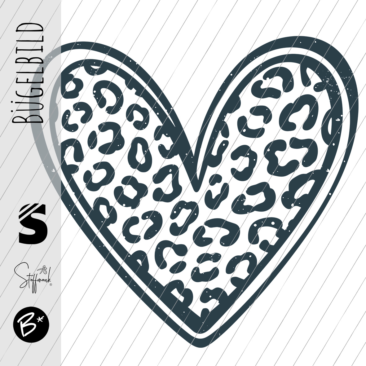 Bügelbild - " Herz mit Outline - Leo Konfetti # blau "