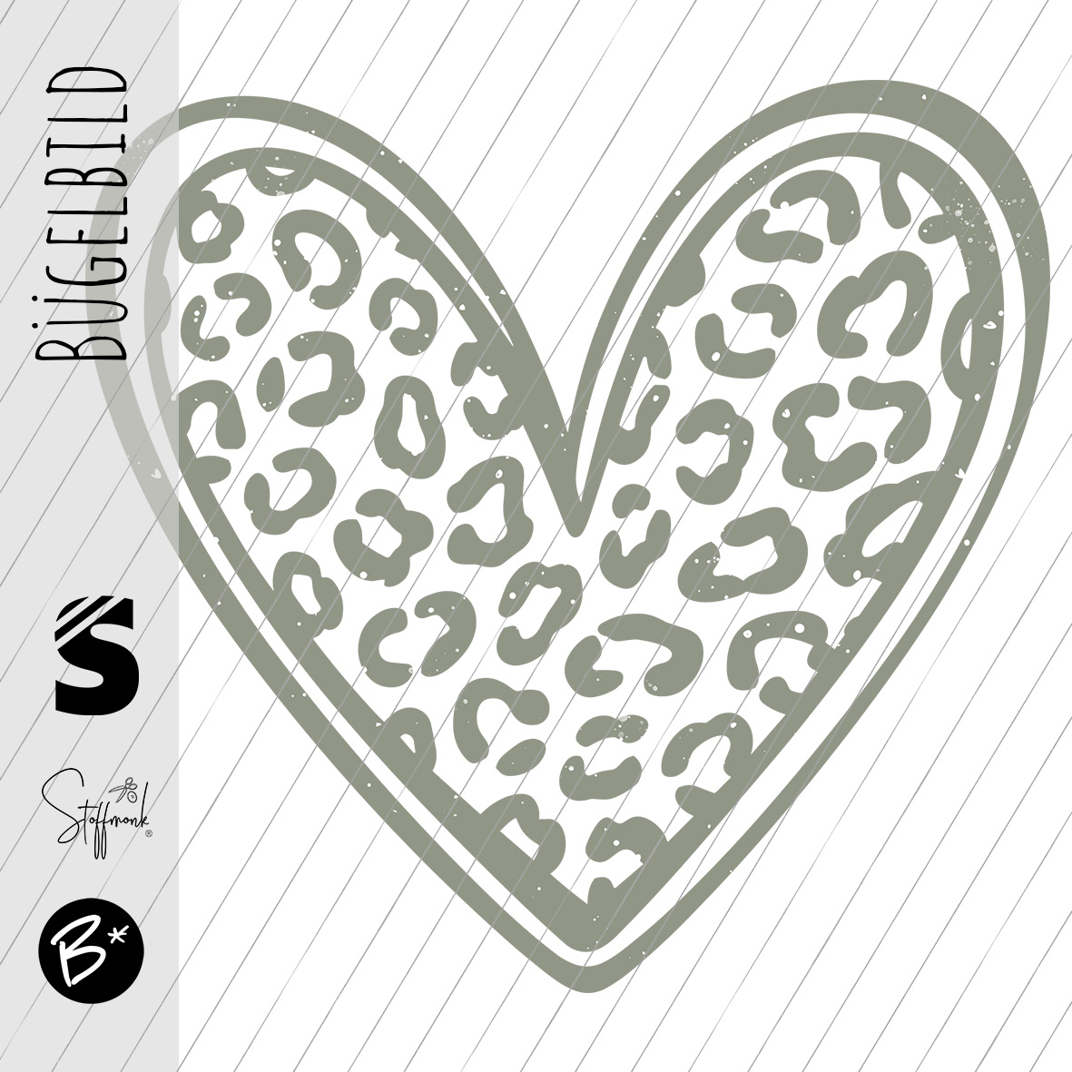 Bügelbild - " Herz mit Outline - Leo Konfetti # oliv "