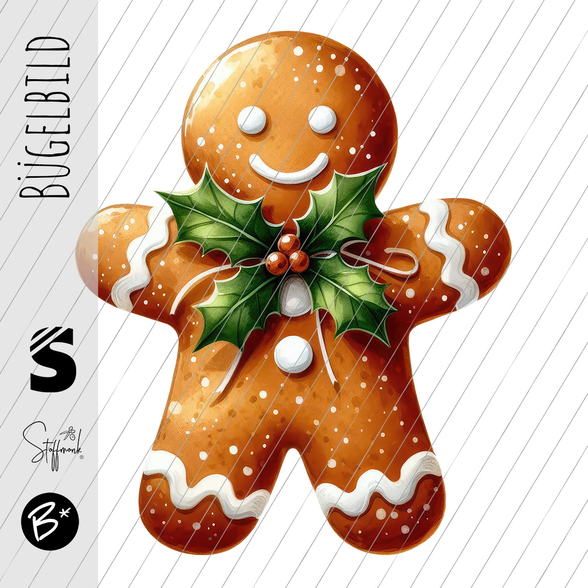 Bügelbild - " Lebkuchenmännchen mit grüner Schleife "