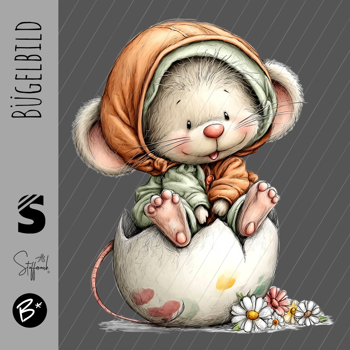 Bügelbild - " Maus im Ei "