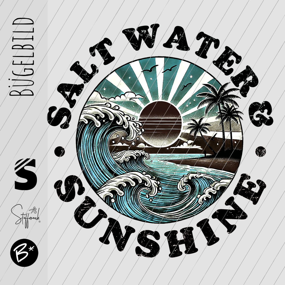 Bügelbild - "SALTWATER" - Rund #schwarz/petrol