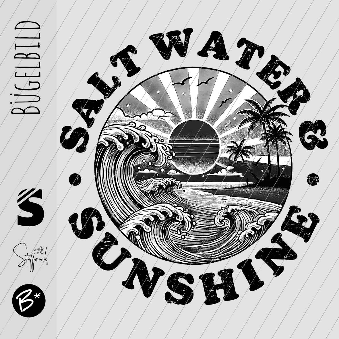 Bügelbild - "SALTWATER" - Rund #schwarz/weiss