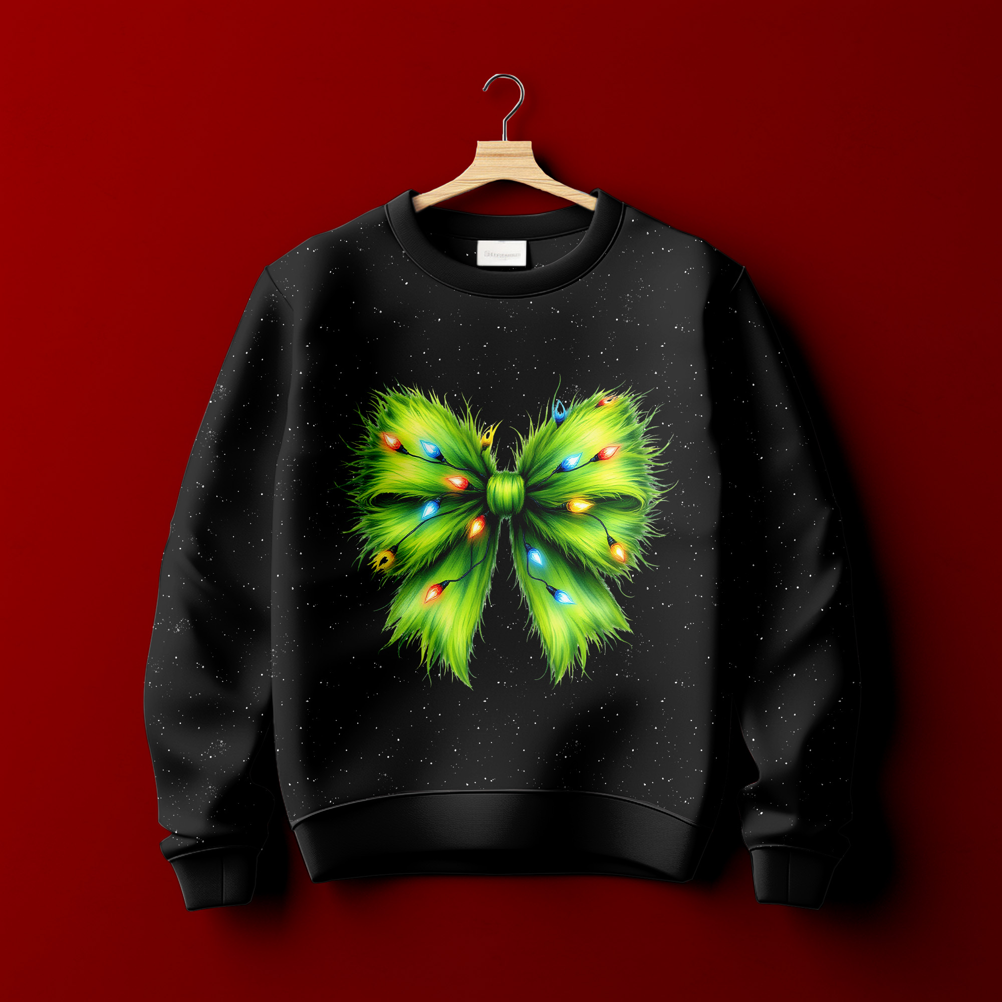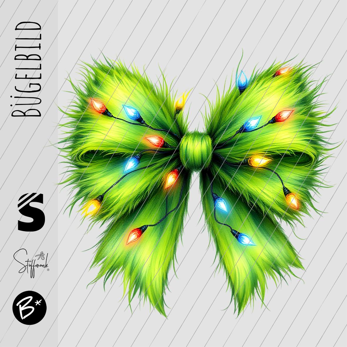 Bügelbild - " Schleife #grün mit Lichterkette "