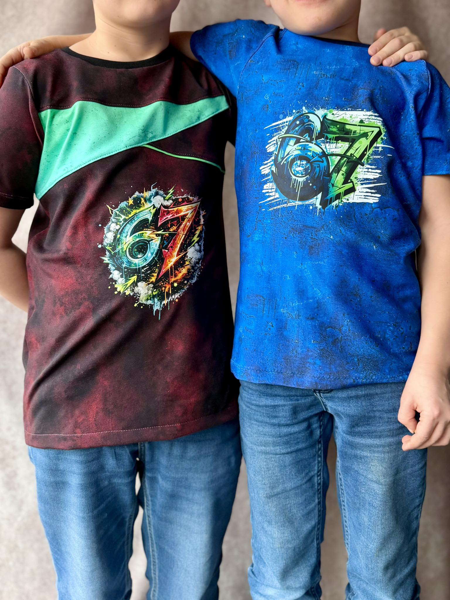 Bügelbild - " Six Seven 67 # Blau/grün "