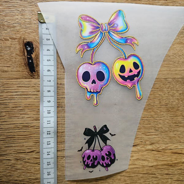Bügelbild versandfertig - SET 1x 10cm Kirschen rainbow + 1x 5cm Kirschen lila