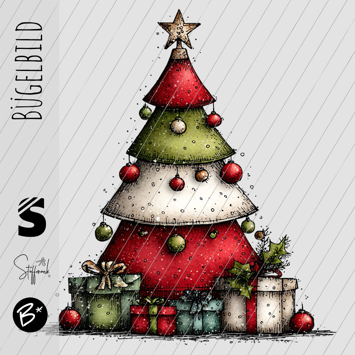 Bügelbild - " Weihnachtsbaum #rot/grün/weiss "