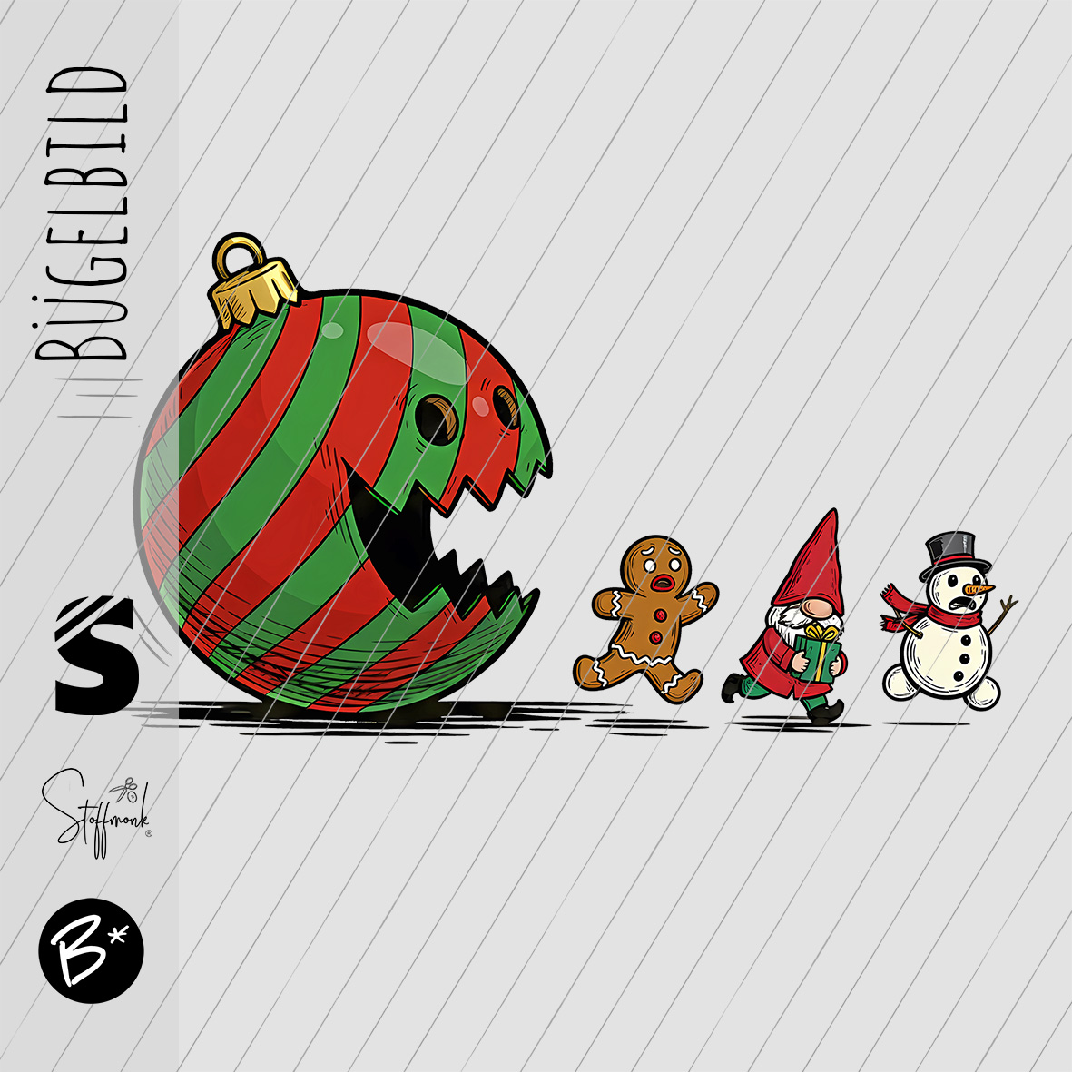 Bügelbild - " Weihnachtskugel (rot/grün) hat Hunger... "