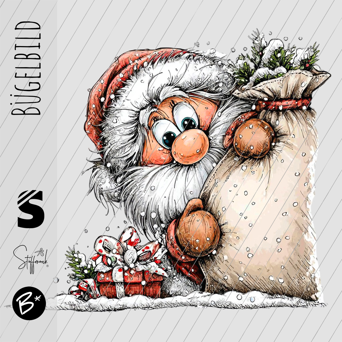 Bügelbild - " Weihnachtsmann kuckt um die Ecke "