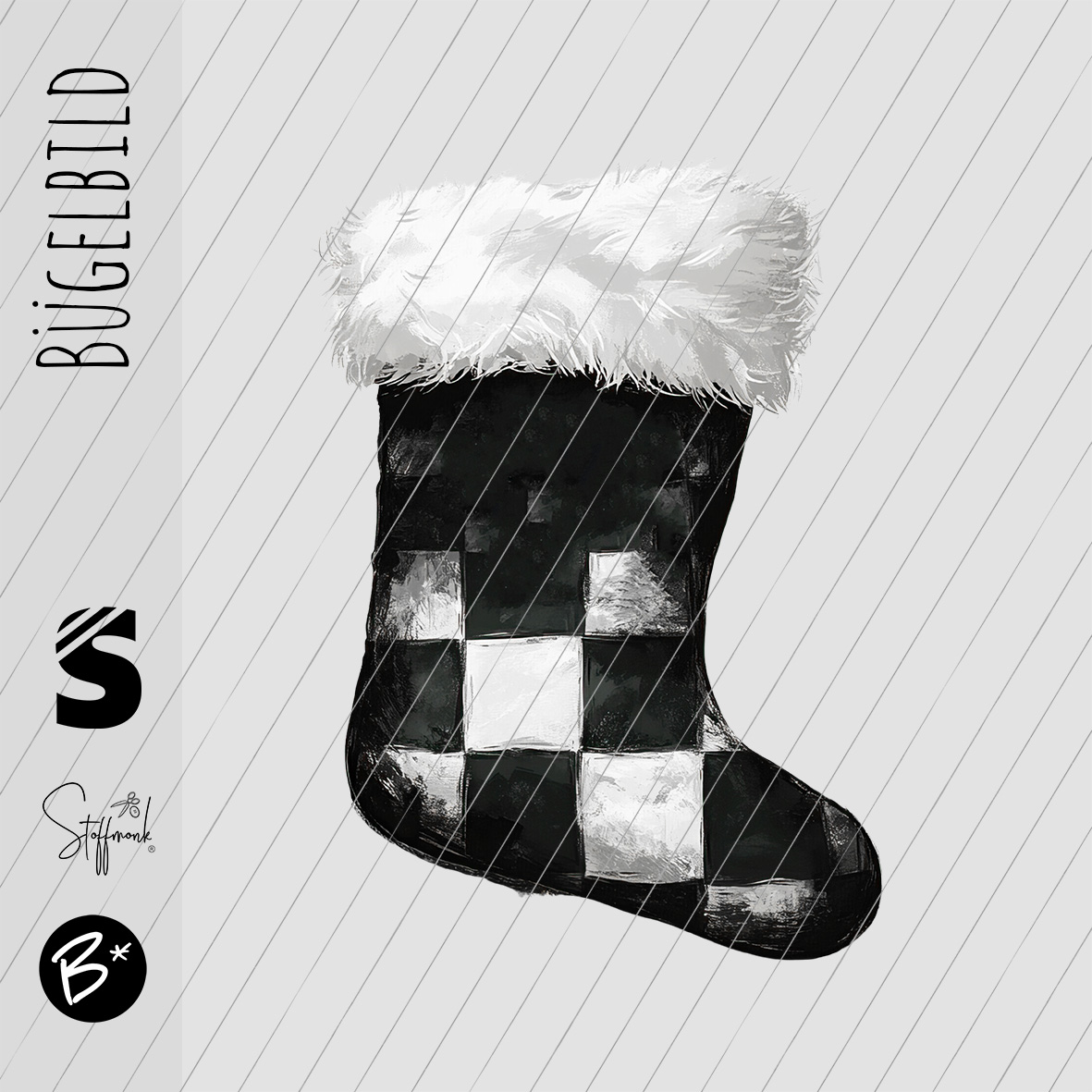 Bügelbild - " Weihnachtsstrumpf weiss/schwarz "