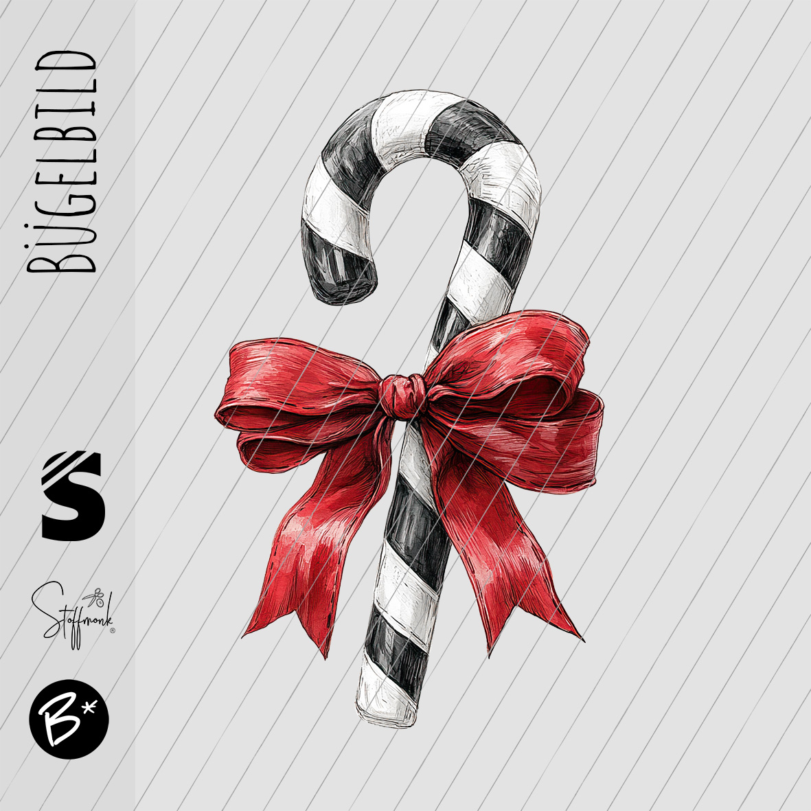 Bügelbild - " Zuckerstange weiss/schwarz " mit Schleife