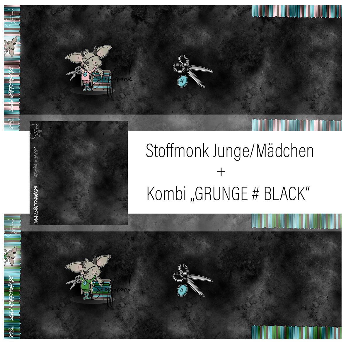 Stoffmonk in Moos Raum Deggendorf/Plattling/Passau - dein Online-Shop für Stoffe, Kurzwaren, tollen Eigenproduktionen und Zubehör. - Eigenproduktion BIO Jersey "GRUNGE # BLACK"