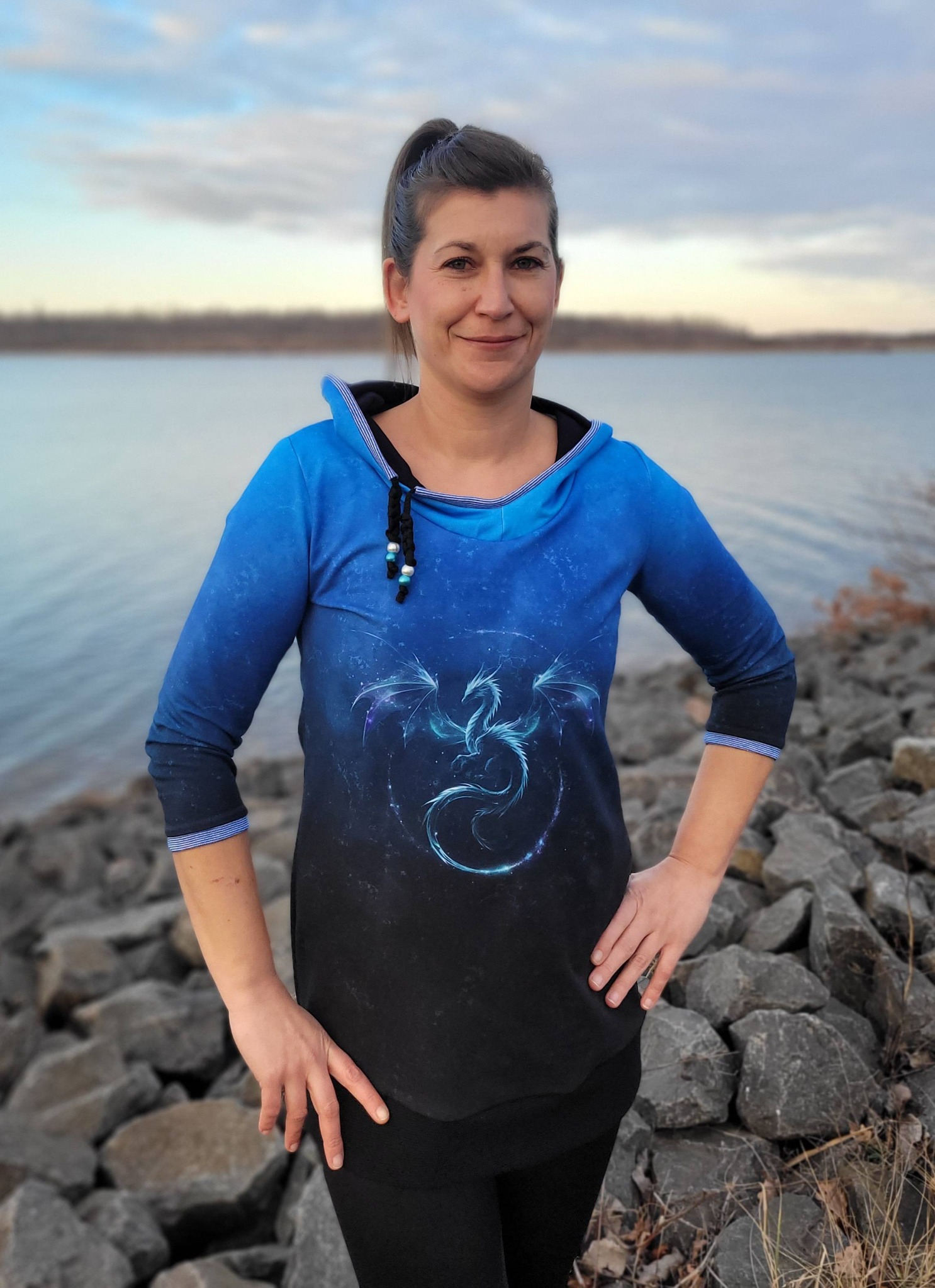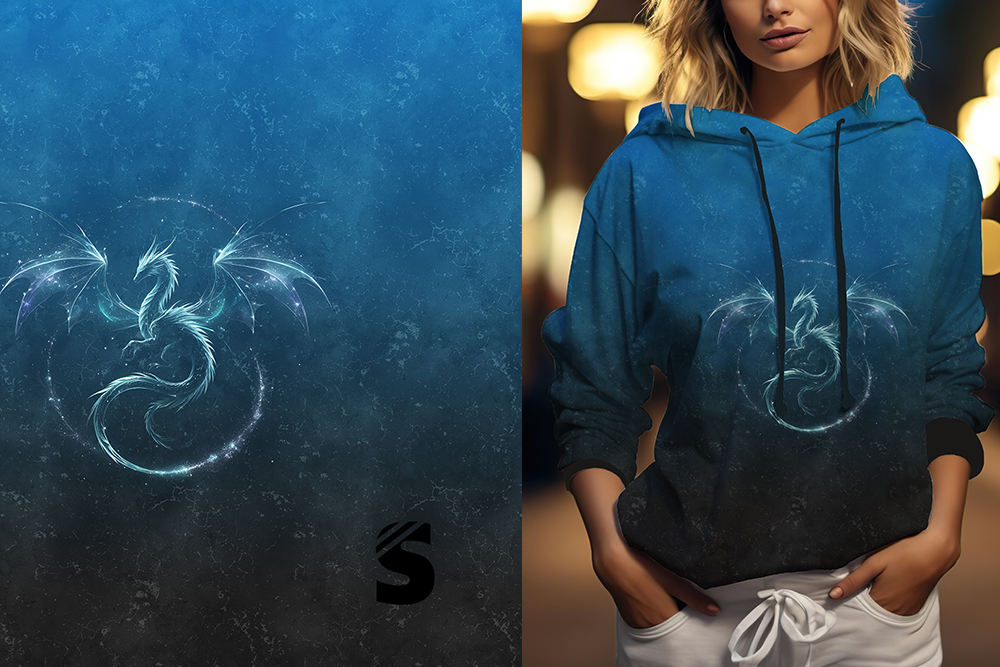 Einzel Panel " DRACHE " - Grunge Verlauf - #dunkelgrau/royal - Bio French Terry