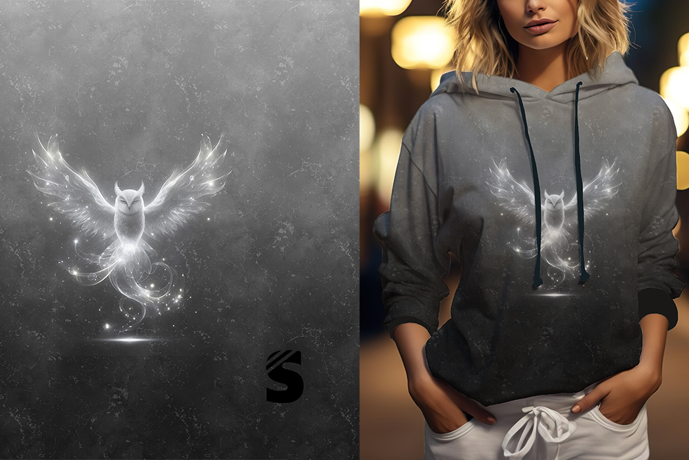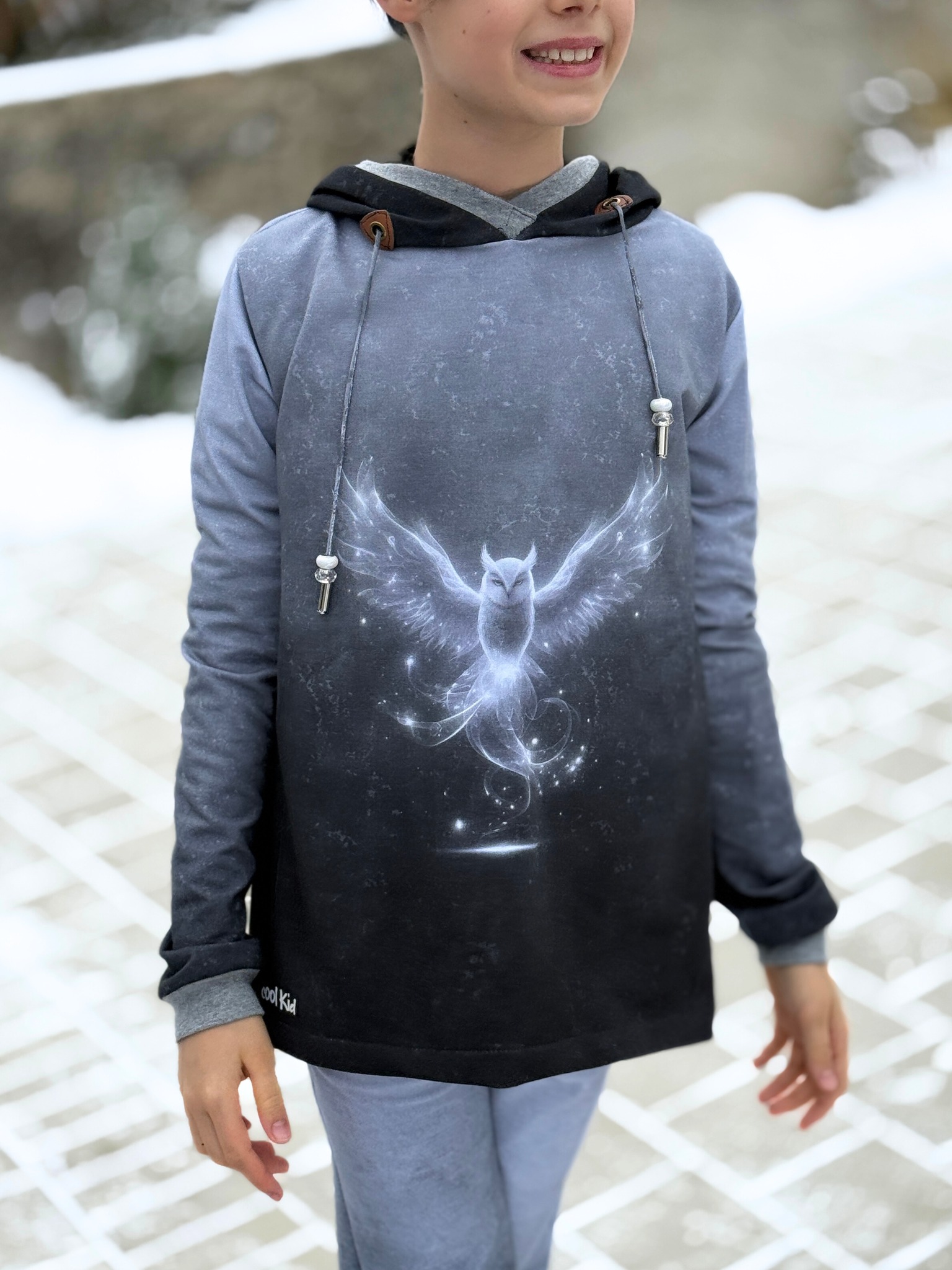 Einzel Panel " EULE " - Grunge Verlauf - #dunkelgrau/hellgrau - Bio French Terry