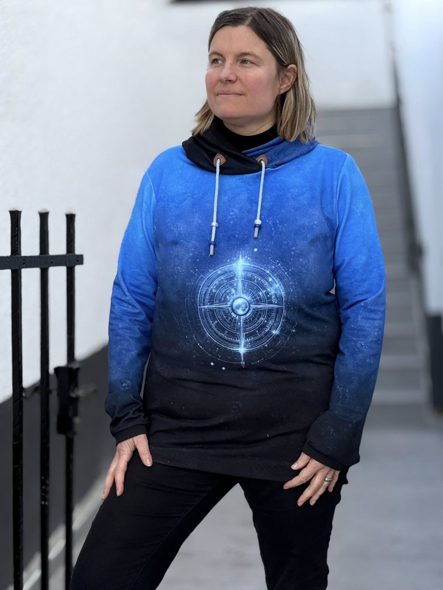 Einzel Panel " KOMPASS " - Grunge Verlauf - #dunkelgrau/royal - Bio French Terry
