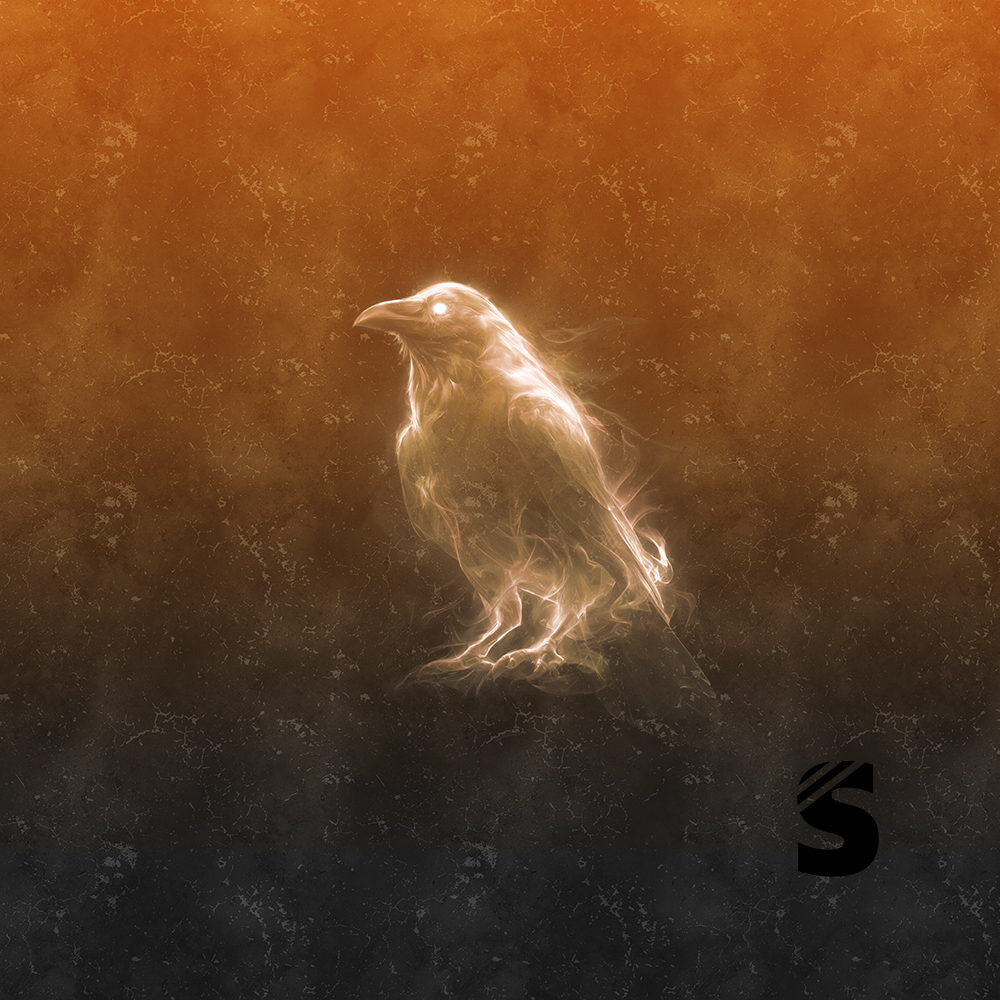 Einzel Panel " RABE " - Grunge Verlauf - #dunkelgrau/orange - Bio French Terry