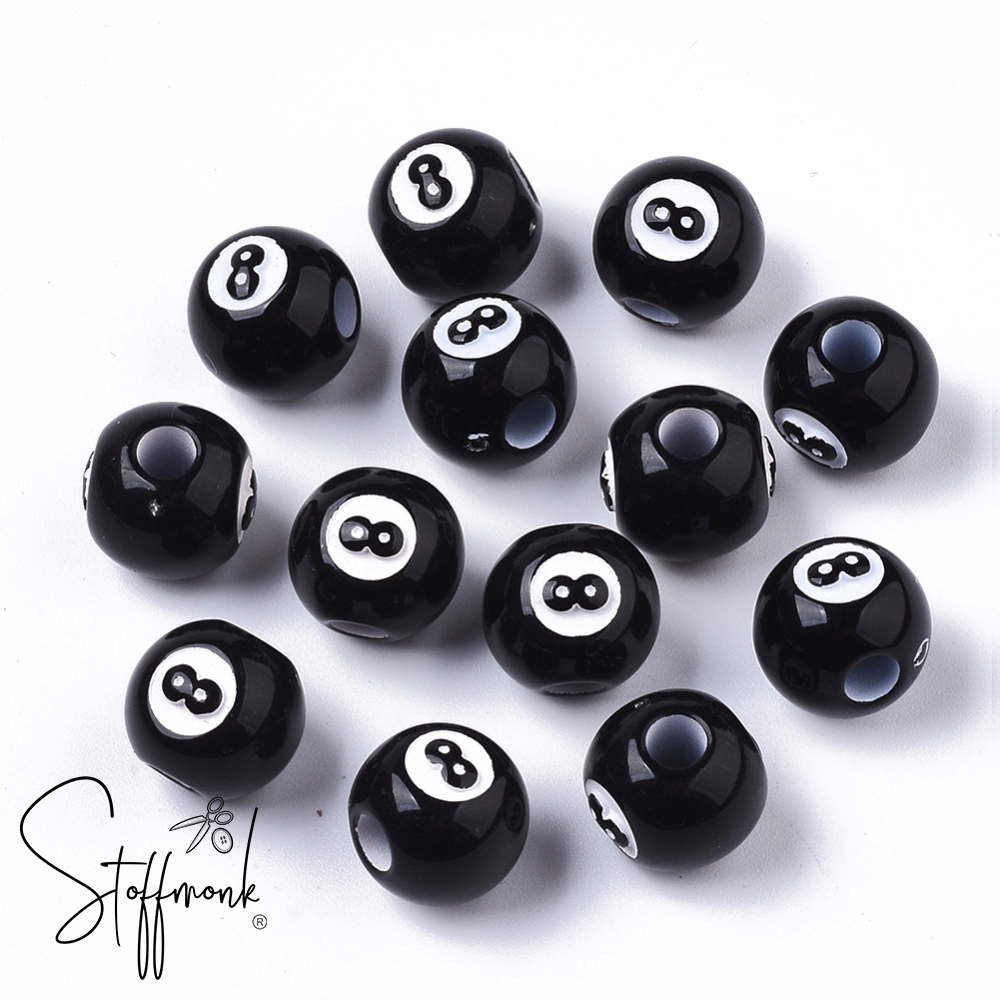 Großlochperlen - Acrylperlen - Billard schwarze 8 - 2 Stück -
