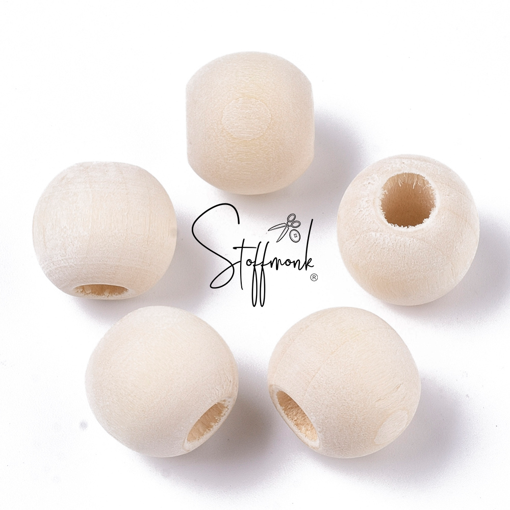 Großlochperlen - Holzperlen natur - 5 Stück -