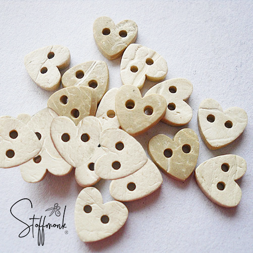 Kokos Knopf hell - Herz - 10 mm - 2 Stück -