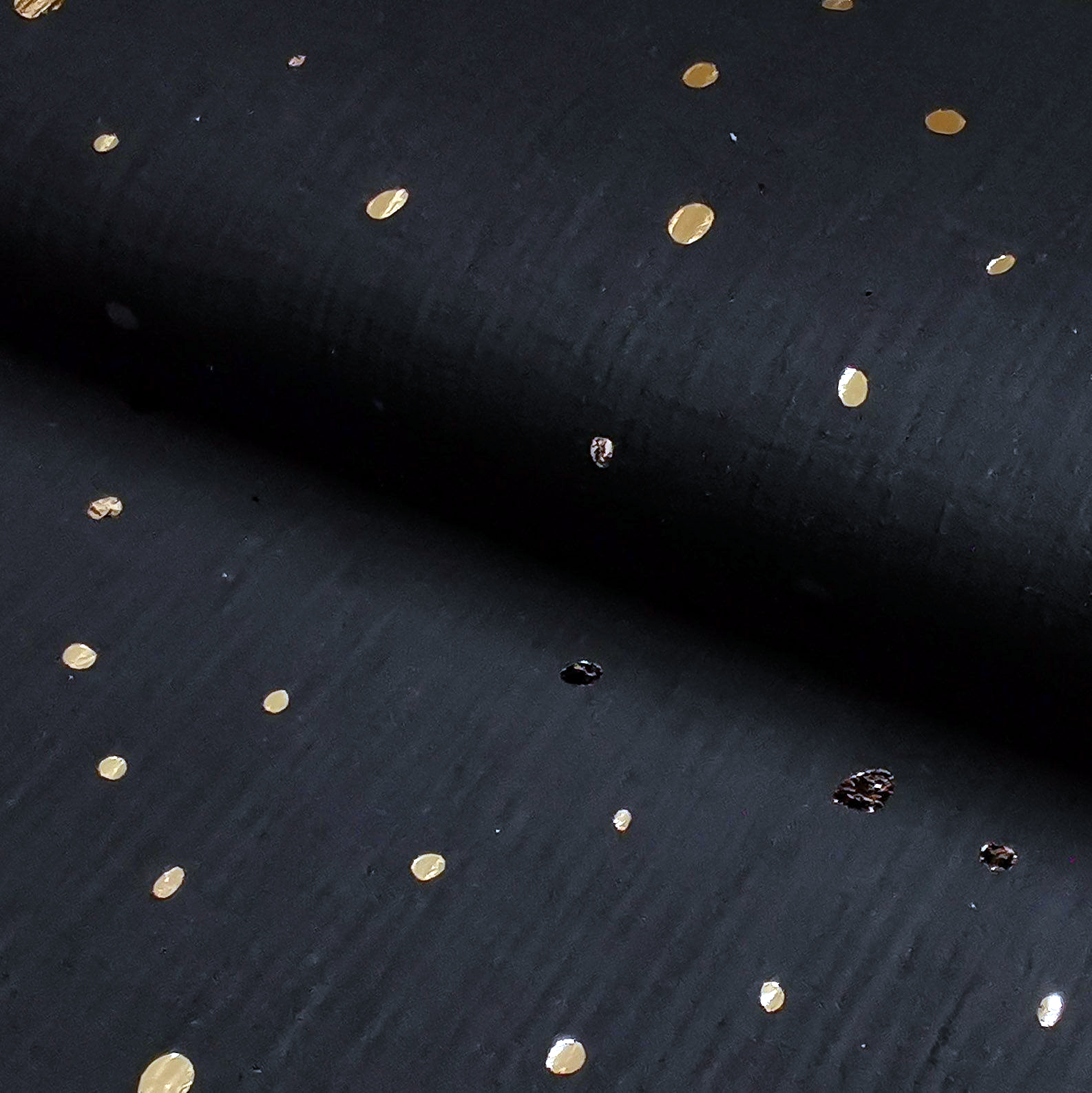 Musselin Double Gauze Schwarz mit Folienkleckse in Gold