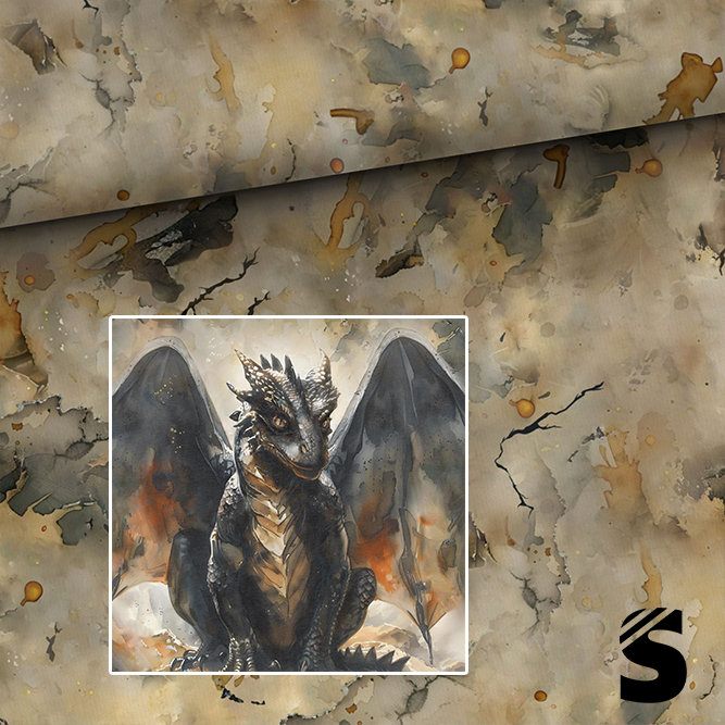 Mobile Preview: PANEL (groß) Papyrus Drache -  French Terry  (Reaktivdruck)