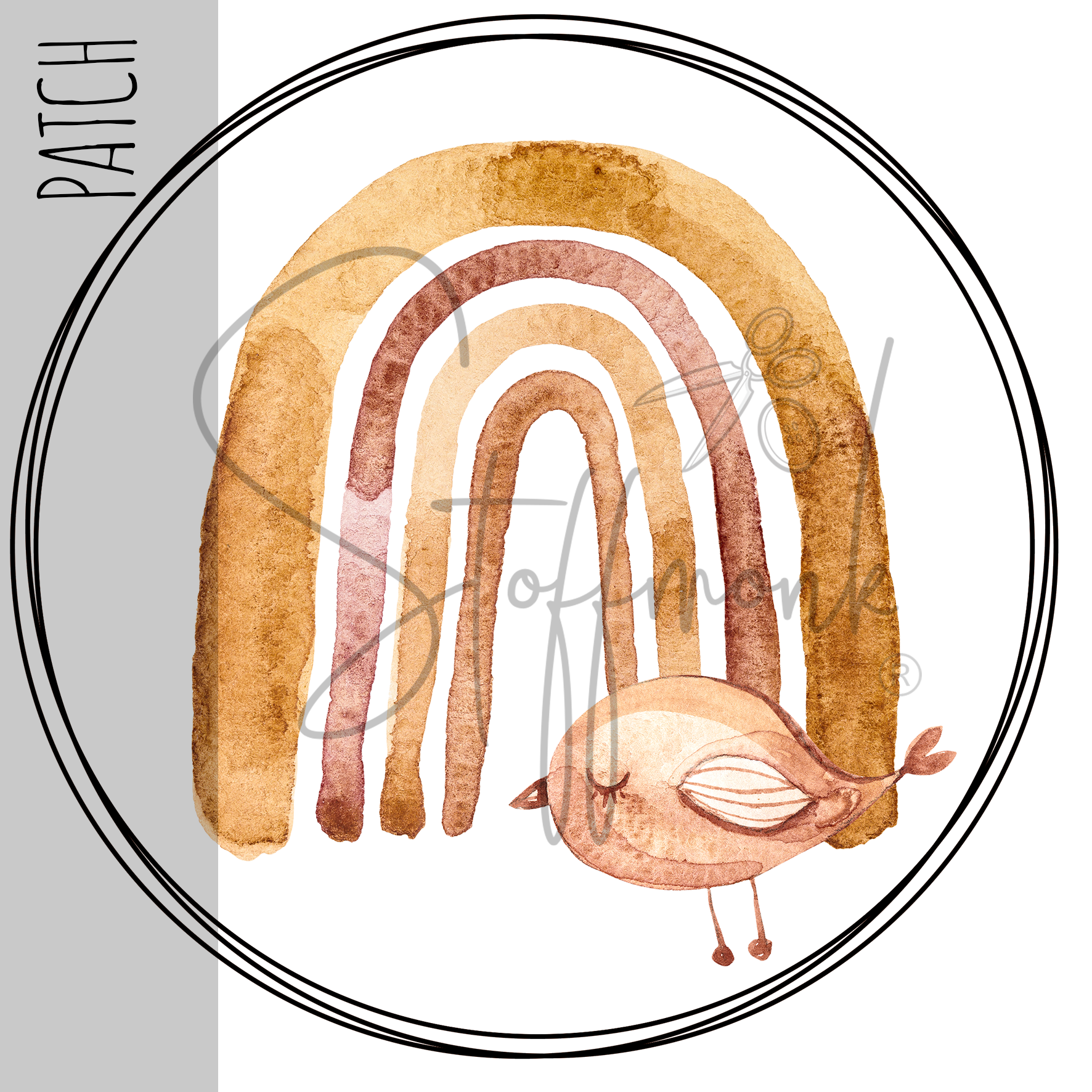 Patch / Aufnäher - Aquarell Regenbogen mit Vogel rost - Größe wählbar -