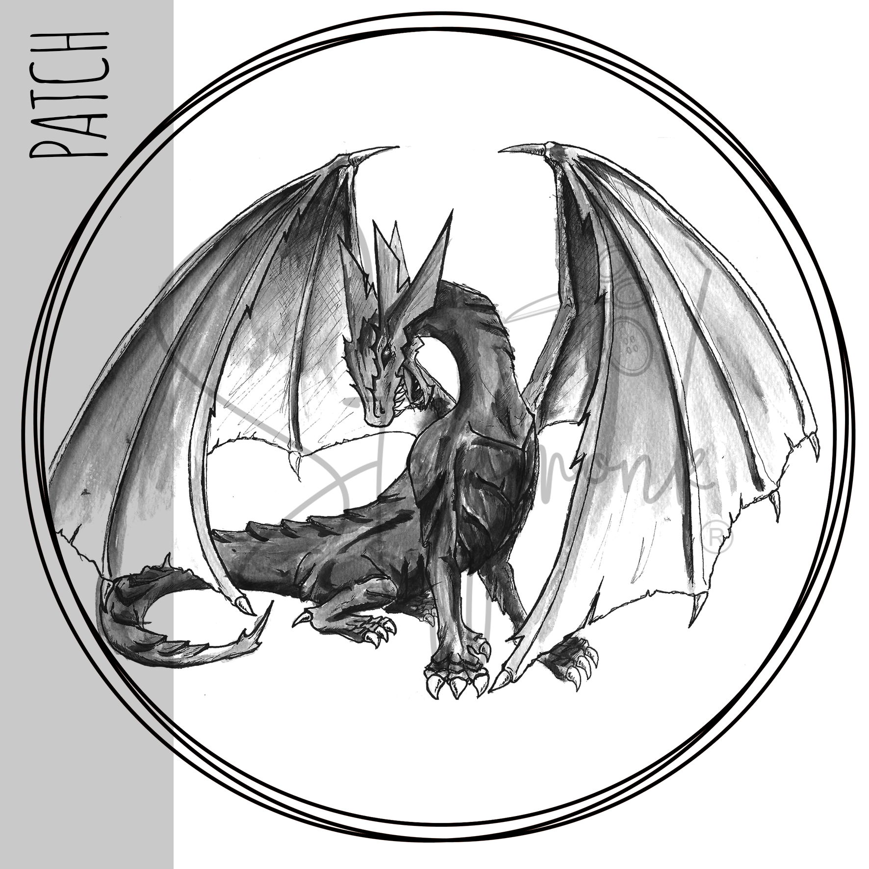 Preview: Patch / Aufnäher  - DRACHE auf weiß - Größe wählbar -