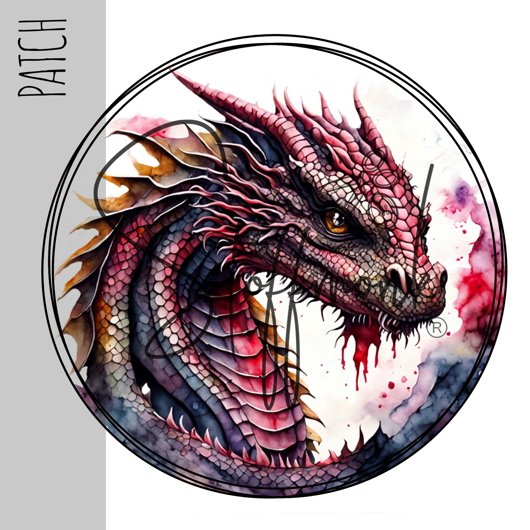 Patch / Aufnäher  - "Drache - rot weiss" - Rund