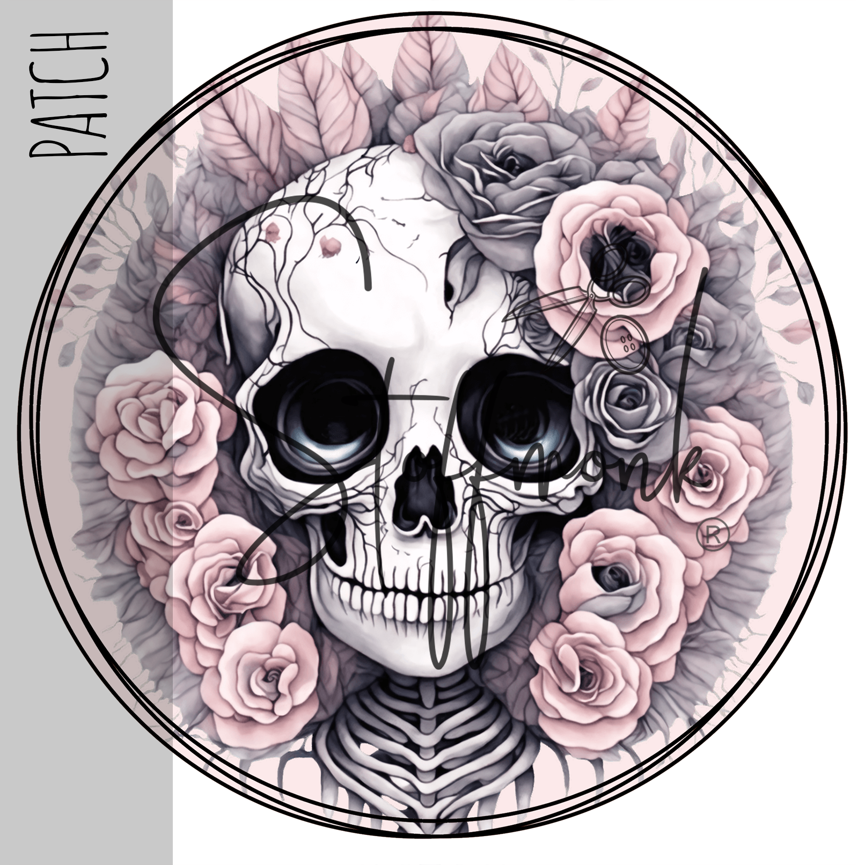 Patch / Aufnäher  - "Skull rosa" - Rund