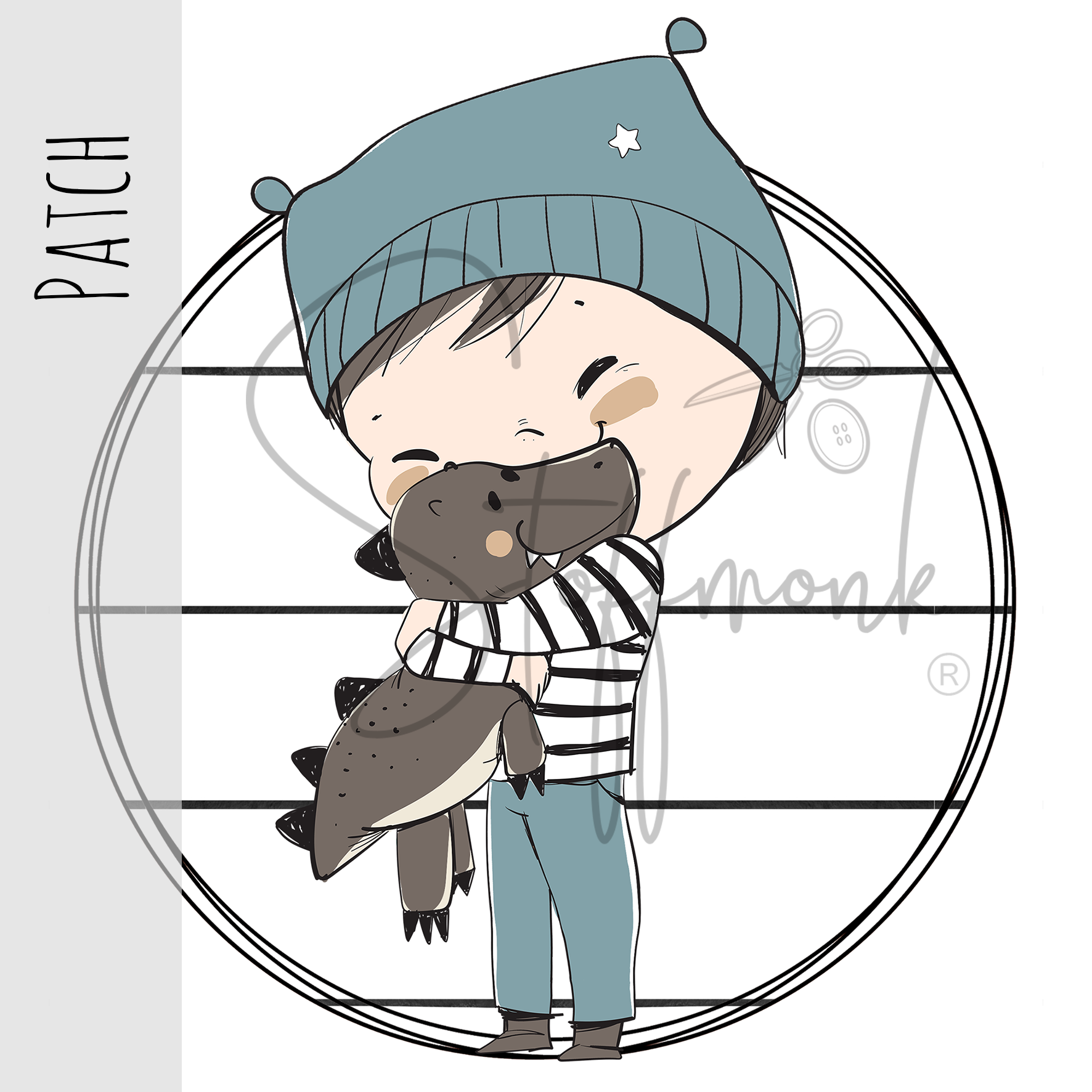 Patch / Aufnäher - Winterjunge mit Dino - große Streifen