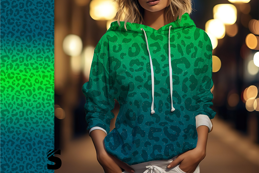RESTSTÜCK - 0,58 Meter LEO Konfetti - #petrol/grün - Bio French Terry