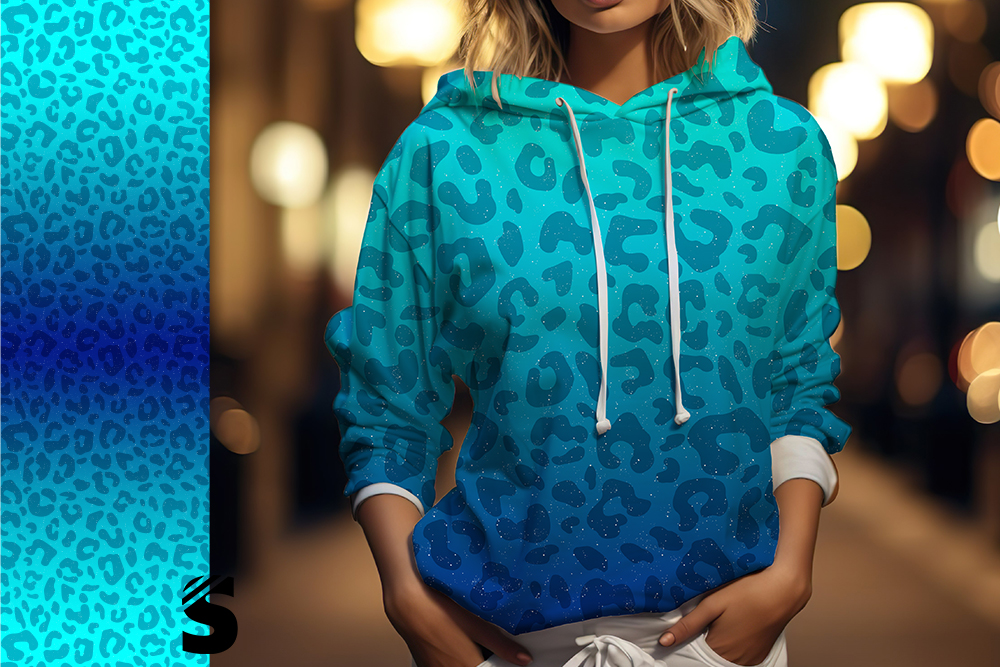 RESTSTÜCK - 0,6 Meter Leo Konfetti - #blau/türkis - Bio French Terry