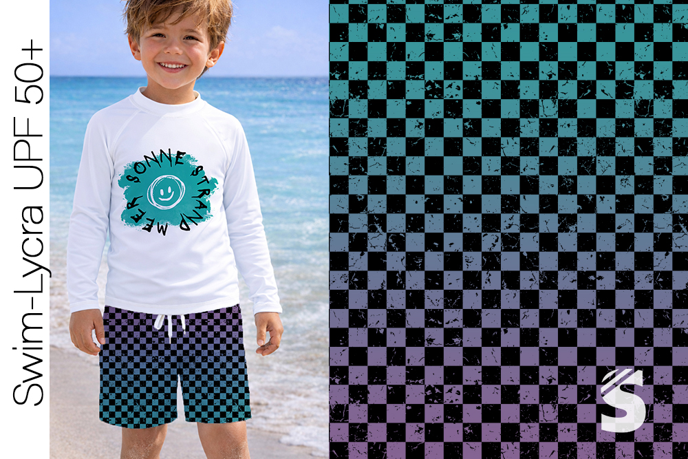 Swim-Lycra UPF 50+ / Bade/Sport Funktionsjersey - " Karogrunge #lila/schwarz "