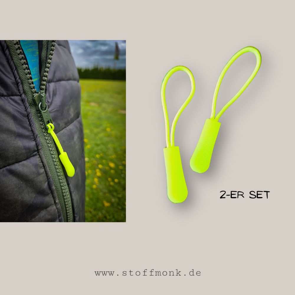 Zieher für Reißverschluss Zipper - 2 Stück - Neongelb/grün